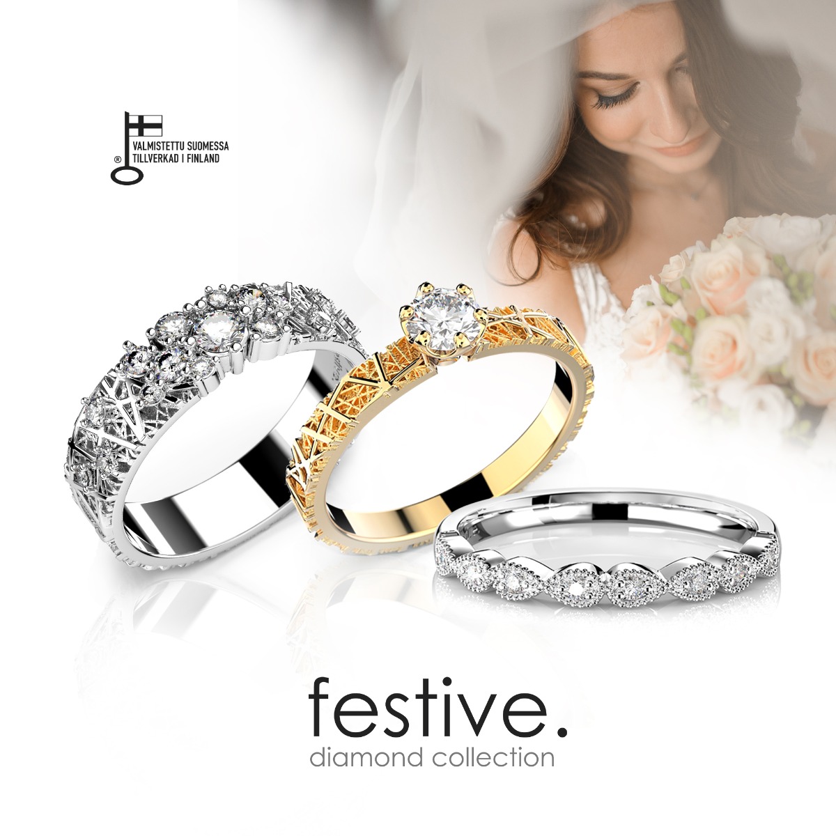 Lisäksi löydät myymälöistämme Kohinoorin ja Festiven upeat timanttisormusmallistot. Seuraa myös tapahtumia Facebook-sivuillamme, niin kuulet ensimmäisenä sormusesittelyistä ja tarjouksista!